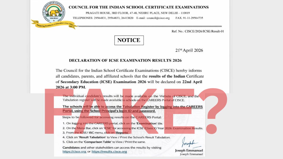 A viral Reddit notice claiming ICSE 10 result 2026 will be released tomorrow is fake and not confirmed by CISCE. Students must wait for official announcement of ICSE result date and time and avoid social media claims. Check details here