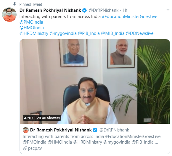 The minister asked parents and students to post their concerns and queries on Twitter and Facebook. Responding to the tweet, several parents, students as well as teachers put forward their demands including cancellation of pending CBSE and ICSE board exams, connectivity issues while attending online classes, fees hike despite government orders, lockdown affecting the mental health of students, the impact of online education on children and more.