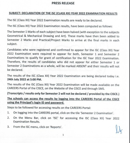 Council For The Indian School Certificate Examinations (CISCE) has announced the ISC 2022 result date and time. The board will release the ISC 12th result 2022 today, July 24, 2022.
