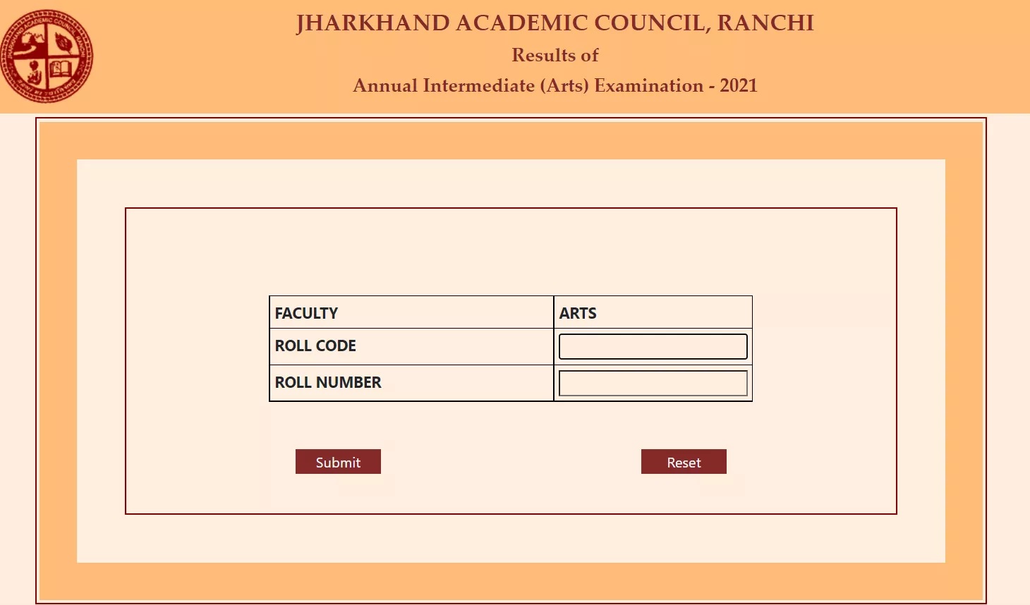 JAC 12th Result 2022 Arts Login Window