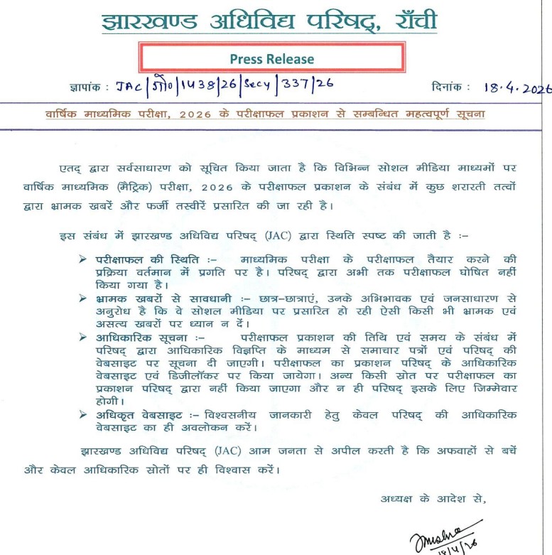 The students must note that the online released JAC class 12 result 2026 and Jharkhand 10th Result 2026 is only for quick checking and is provisional. Students need to collect their original marksheet from their respective schools later.