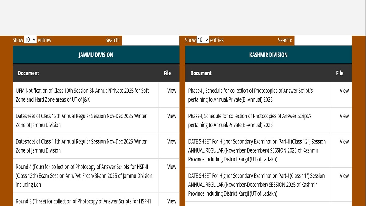 The detailed subject wise JKBOSE Class 10 and 12 date sheet 2025 is now released for the October-November session exams. According to the schedule, JKBOSE 10th exams 2025 for students from the Kashmir division and winter zone areas of Jammu division will be held between November 3 and 27, 2025.