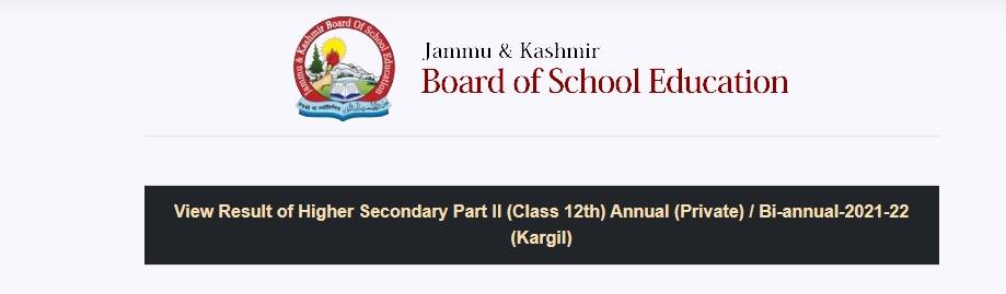 Step 2: Click on 'Higher Secondary Part II (Class 12th) Annual (Private) / Bi-annual-2021-22 (Kargil division)' link provided on the website