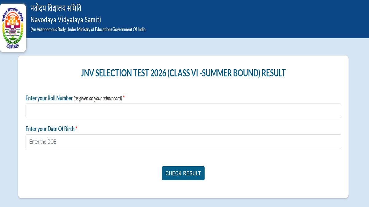 JNVST Class 6 Result 2026: Navodaya Vidyalaya Samiti has released results for Jawahar Navodaya Vidyalaya Selection Test (JNVST) class 6 entrance exam 2026. Students who appeared for exam can now check their summer bond JNVST class 6 result 2026 online at navodaya.gov.in. They can check NVS class 6 selection list and verify their qualifying status for admission.