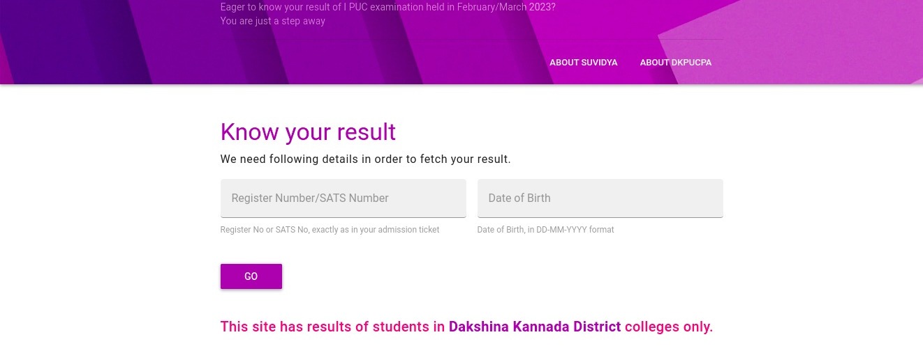 - In the input fields, enter registration number and date of birth in the Karnataka 1st PUC result link