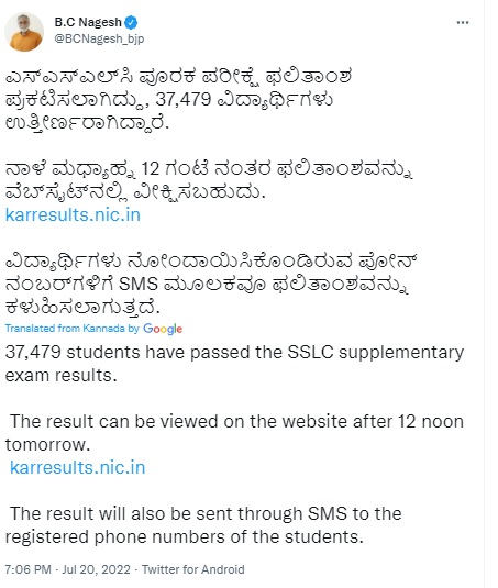 Karnataka SSLC Supplementary Result 2022 has been declared in the online mode on July 21. Students can check it at karresults.nic.in.