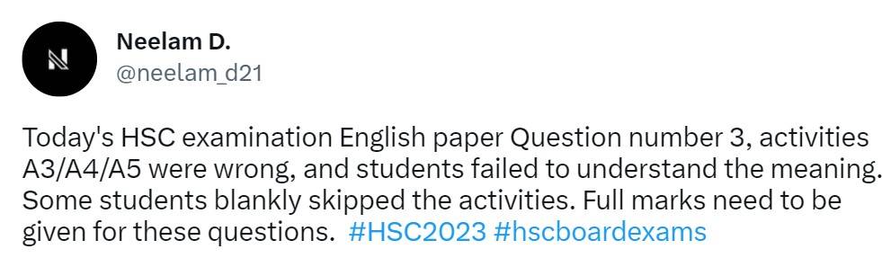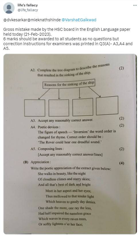 Error in Maharashtra 12th HSC Board English Question Paper 2023 is trending all over the internet. Students are demanding full six extra marks to account for the errors. Check out some of the tweets below:
