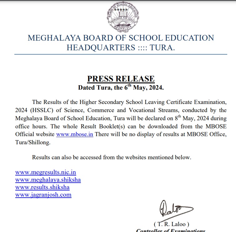 - MBOSE HSSLC Result 2024 Today @megresults.nic.in Live Updates; Check Meghalaya Board Class 12 Result