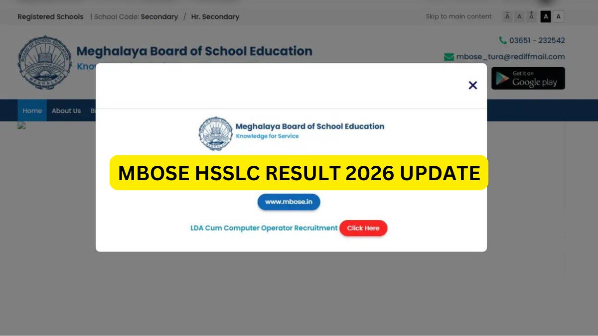 MBOSE HSSLC Result 2026: The Meghalaya Board of School Education (MBOSE) is expected to announce the HSSLC (Class 12) Result for the session 2026 anytime soon. Students who appeared for the Meghalaya Class 12 board exam 2026 can check their results online once the board activates the Meghalaya Board HSSLC Result 2026 link on its official websites.