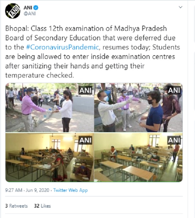 Madhya Pradesh Board today had begun the Class 12th Board exam which was postponed earlier due to nationwide lockdown imposed to contain the spread of coronavirus.