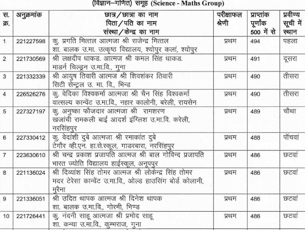 MP Board Topper List 2022 Class 10