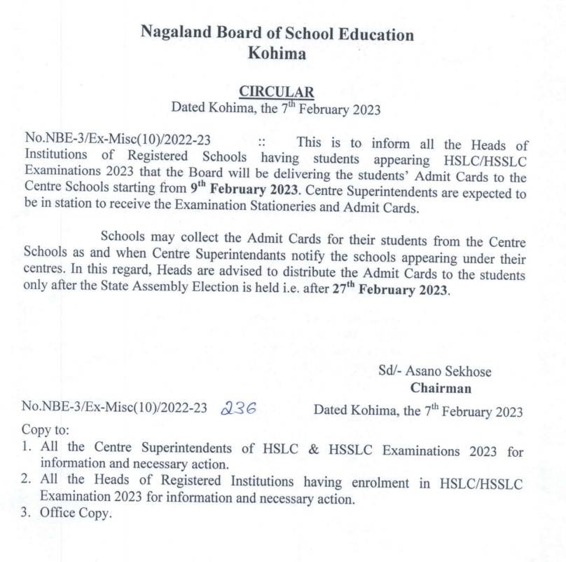 Students must note that while NBSE HSLC HSSLC admit card have been released but they are required to collect their NBSE 10th admit card 2023 and NBSE 12th admit card 2023 from their school.