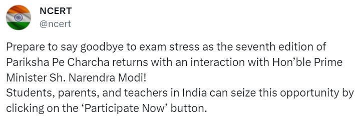 NCERT added, “Don’t miss out on the chance to be part of #PPC2024 and join the journey of #ExamWarriors. The deadline for participation is 12th January 2024. Participate Now: https://innovateindia.mygov.in/ppc-2024/”