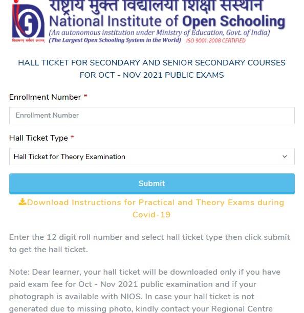 The NIOS Class 10, 12 Hall Ticket 2021 has been released for November exam cycle.