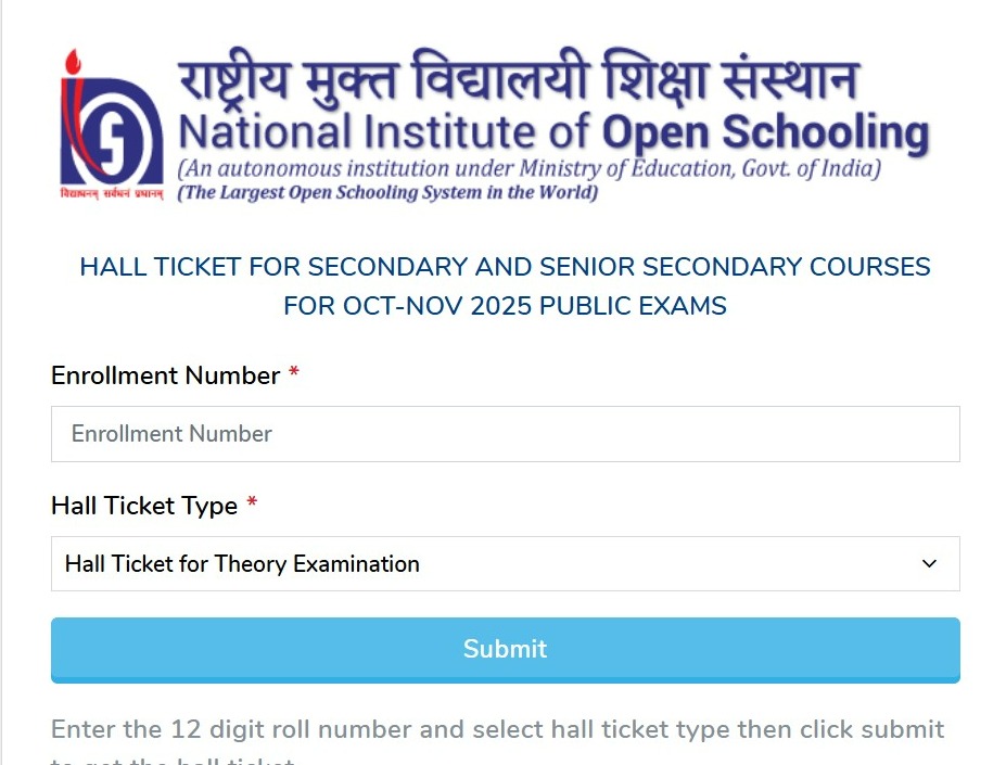 Release of NIOS hall ticket 2025 for Theory exams October 2025