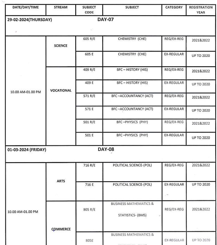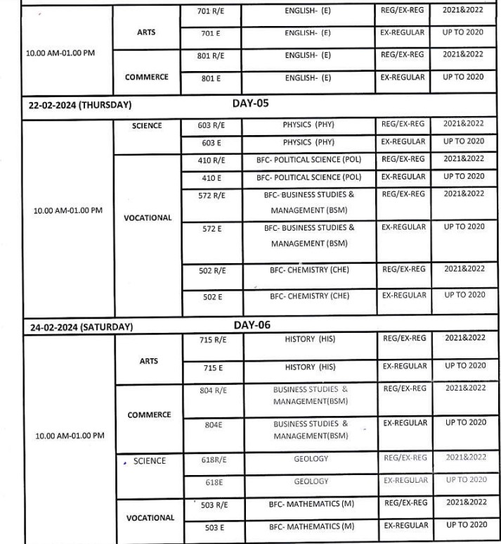 Check the Odisha 12th time table 2024 screenshot below.