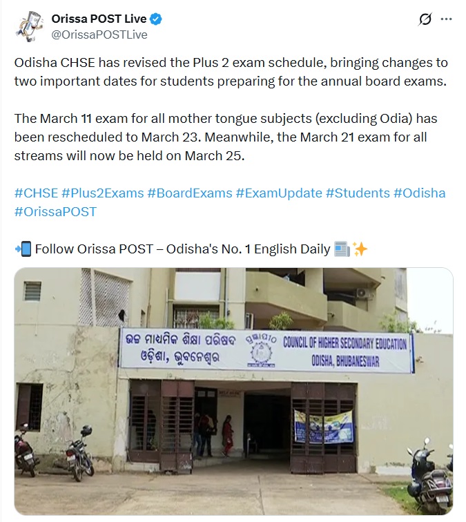 Odisha Plus Two Time Table 2026 has been revised. The March 11 exam for all mother tongue subjects (excluding Odia) has been rescheduled to March 23. Meanwhile, the March 21 exam for all streams will now be held on March 25. Check all details here...