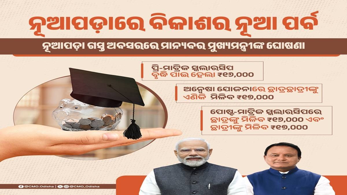 The announcement was done during a district-level event in Nuapada, to ramp up financial support for thousands of young scholars, with amounts now reaching as high as ₹17,000 per beneficiary.