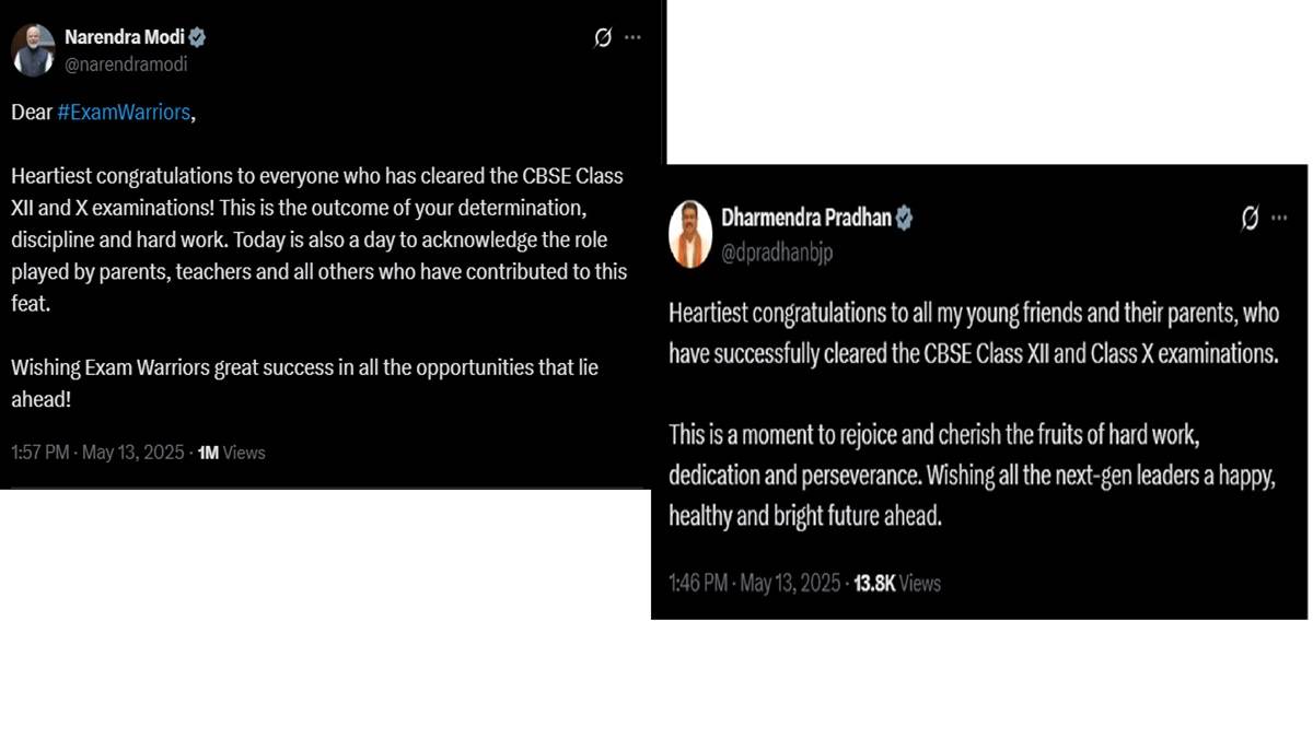 Union Education Minister Dharmendra Pradhan and Prime Minister Narendra Modi took to X today to celebrate the success of CBSE Class 10 and 12 students following the announcement of the CBSE Board Results 2025 earlier this morning. Their messages highlighted the studentsโ dedication, the outperformance of girls, and a broader message of resilience for those facing setbacks, reflecting Indiaโs commitment to nurturing its young talent.