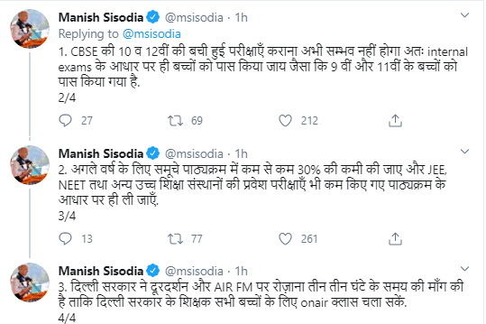 Delhi government has said that it will not be possible to conduct the remaining CBSE exams and so the children should be passed on the basis of internal examination marks only. Read to know more.