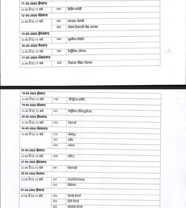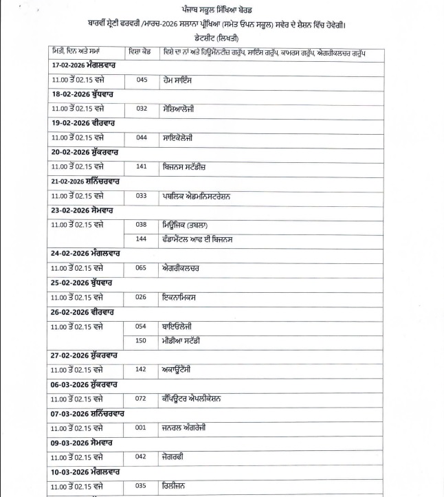PSEB released the Punjab Board date sheet 2026 on the official website. PSEB 10th exams 2026 will begin on March 6, 2026 while PSEB Class 10 exams 2026 will begin on Feb 17. Exams for 10th class will conclude on April 1, 2026 while Class 12 exams will end on April 4, 2026. Check all details here...