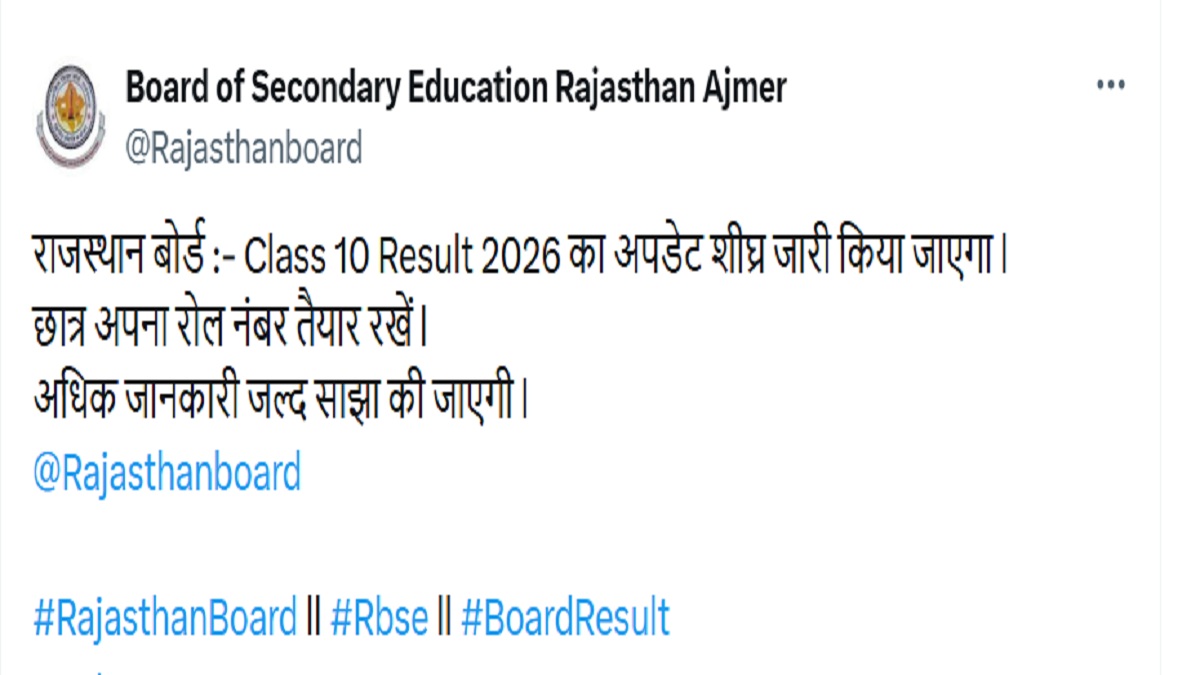 Rajasthan Board 10th Result 2026 Update on X