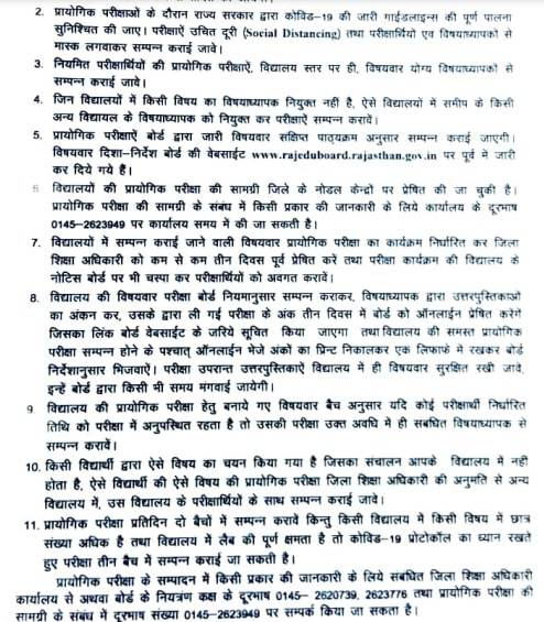 RBSE Class 12 Practical Examination 2022 Guidelines