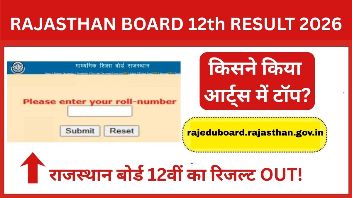 Rajasthan Board Arts Topper 2026: The Board of Secondary Education, Rajasthan, has announced the RBSE Rajasthan Board 12th result 2026 today, March 31. Along with the results, the RBSE 12th Arts Topper 2026 has been announced. Students from the RBSE senior secondary Arts stream can now check the Rajasthan Board 12th topper list and their individual scores through the official portal. The 12th RBSE result 2026 link is available at rajeduboard.rajasthan.gov.in. To check the results, students have to enter their RBSE roll number on the result page. Thereafter, provisional Rajasthan Board 12th marksheet 2026 will be available, where students can check their overall marks, subject-wise marks and percentage scored in the exam.