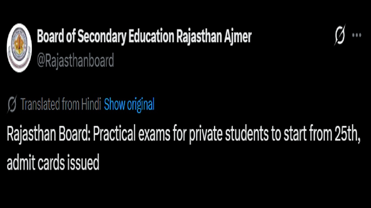 They must carry their RBSE 12th practical exam admit card along with all required documents to examination centre. As per schedule released, RBSE 12th practical exam will commence from January 25. Last exam will be held on January 31. The board has also issued instructions to private students regarding exam process. They are advised to reach their respective exam centres on time to avoid any inconvenience.