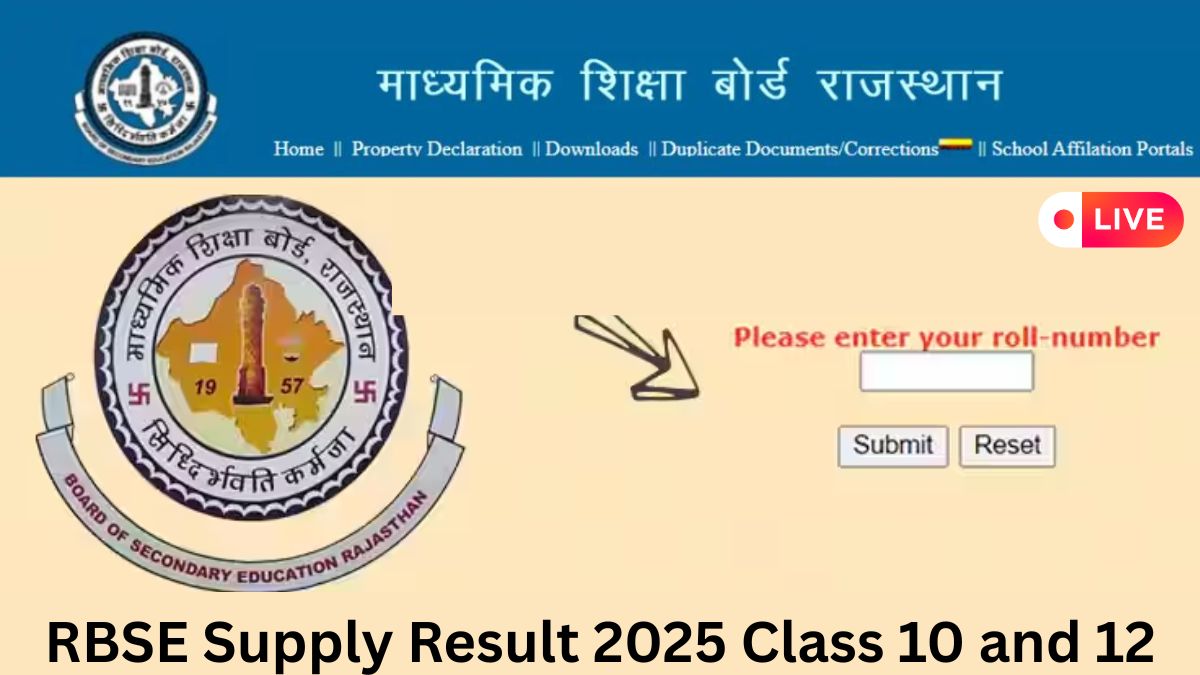 RBSE Supplementary Result 2025 Class 10 and 12 Live Updates