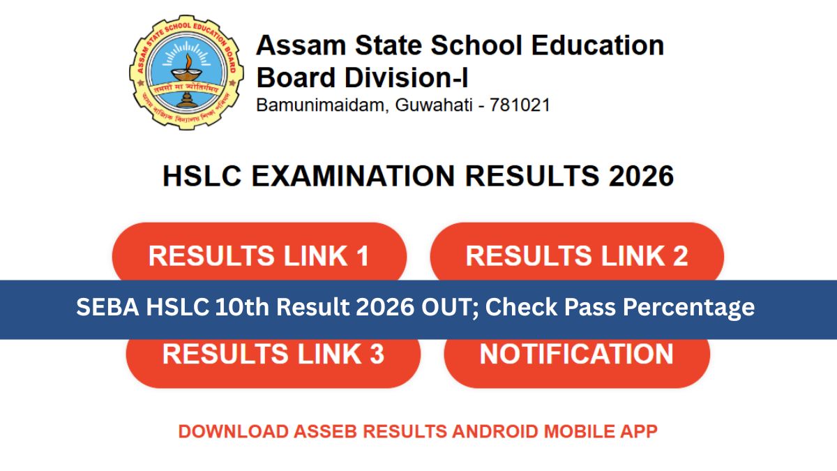 SEBA HSLC Result 2026 has been declared at sebaonline.org with overall pass percentage. Students can check their Assam HSLC 10th results online by using their roll number. Check girls and boys pass percentage here