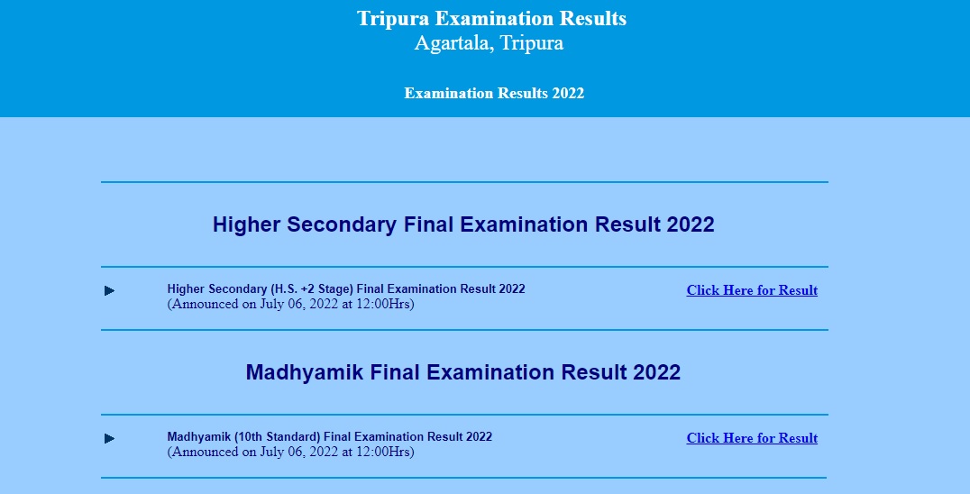 Tripura board will release the Tripura Madhyamik result 2022 and final TBSE term result 2022 class 12 on the following websites: