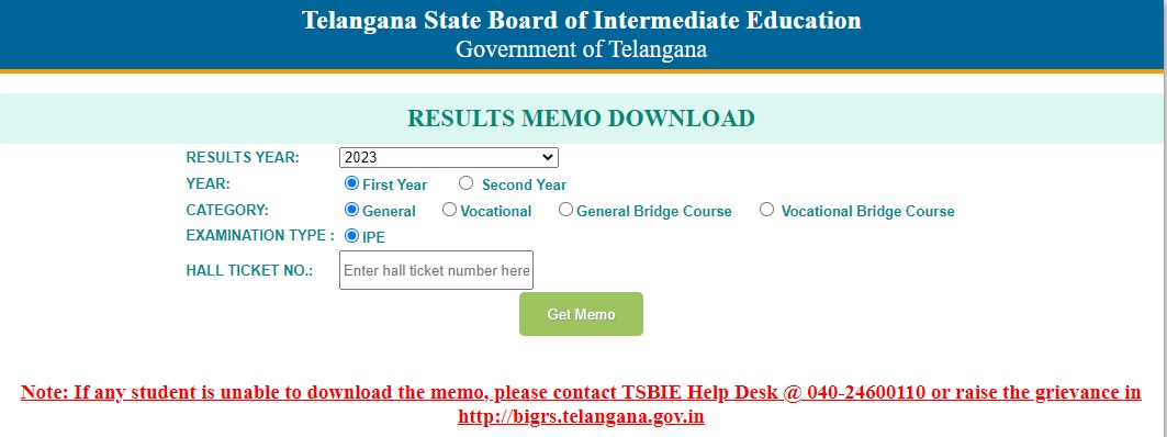 TSBIE inter ts.cgg.gov.in 2023 result marks memo