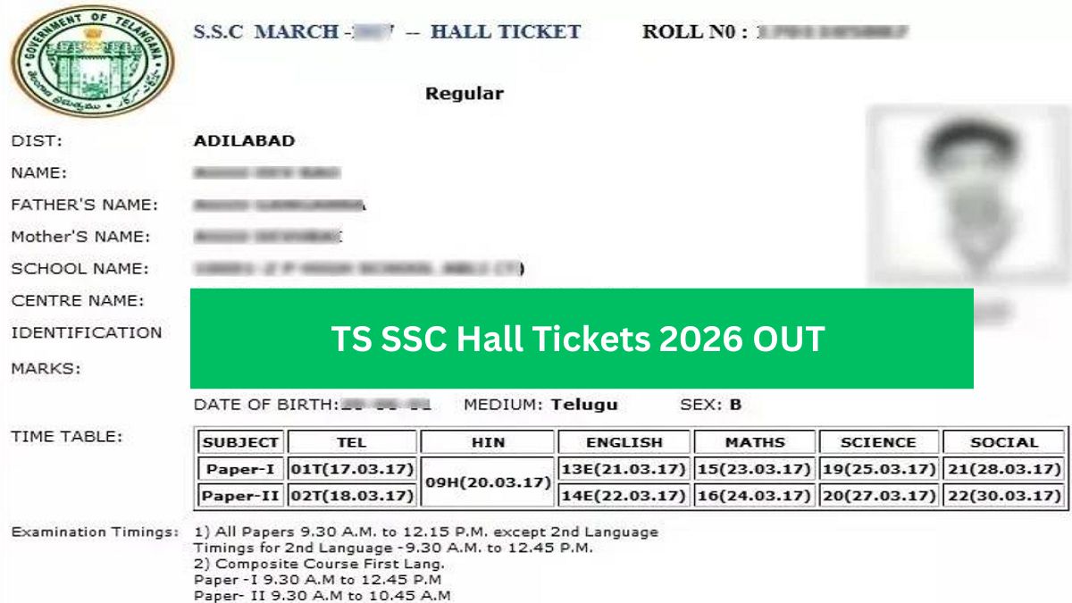 Telangana SSC hall tickets 2026 have been released for Regular, Private, Vocational and OSSC students. They must carry their TS SSC hall tickets 2026 Telangana to exam hall. Without it, no student will be allowed to appear for exam. As per schedule, Telangana SSC board exams 2026 will be conducted between March 14 and April 16, 2026.