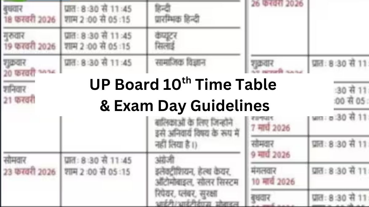 UP Board class 10th exam 2026 begins from February 18, 2026. Appearing students can check the UPMSP 10th time table and exam dates for all subjects. Read further to know exam day guidelines for UP 10th board exam 2026 and other exam related details.Â