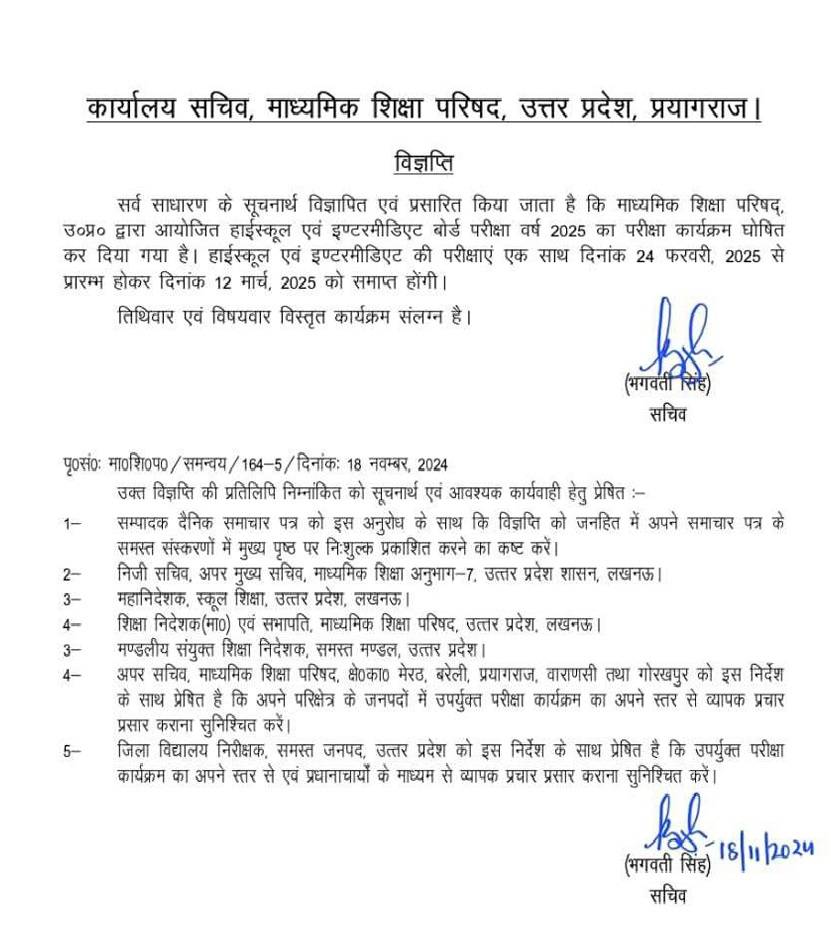 The first day of the exams, February 24, 2025, will see UP Board High School 2025 students writing their Hindi paper in the first shift, followed by the Healthcare paper in the second shift. Meanwhile, UPMSP Intermediate 2025 students will begin with the Military Science paper in the morning shift and the Hindi paper in the afternoon shift.
