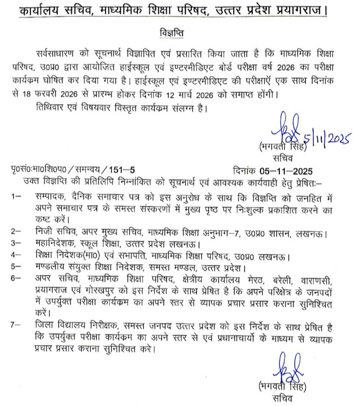 UP Board Exam Date 2026 Class 10, 12 Live Updates