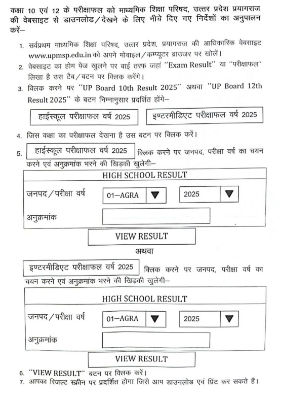 अगर आप 10th result 2025 UP Board या UPMSP Board Result 2025 Class 12 देखना चाहते हैं, तो इन आसान स्टेप्स को अपनाएं: