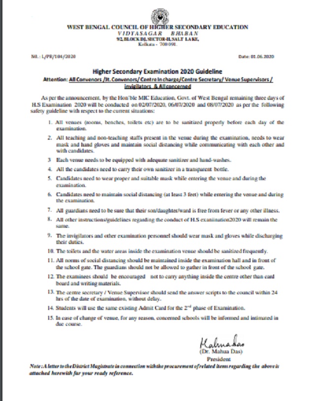 According to the revised West Bengal Council of Higher Secondary Education (WBCHSE) Class 12th Date Sheet 2020, the higher secondary (Class 12) pending examination will be conducted on July 2, 6 and 7.