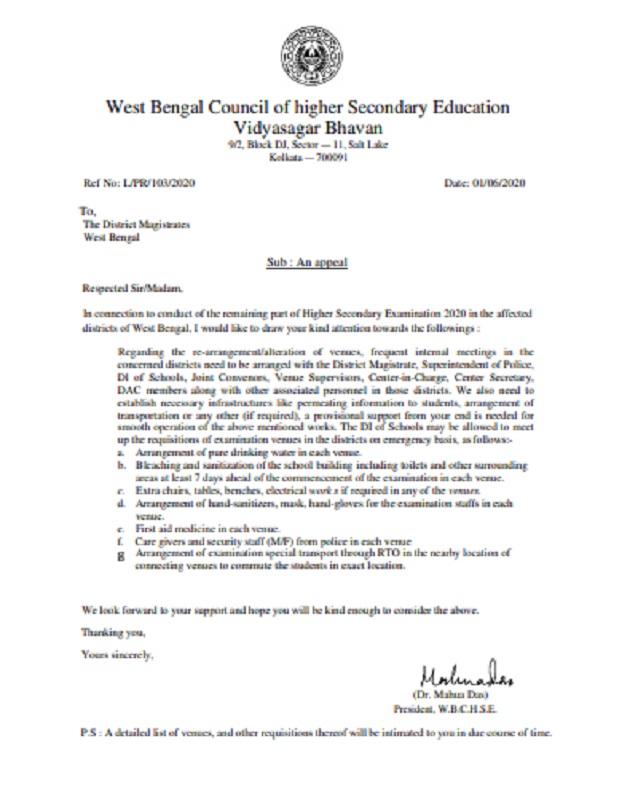 While addressing a press conference, the education minister said that around 116 examination centres were devastated due to the cyclone Amphan. All these schools need to be repaired, the public transport system which has been affected due to month-long lockdown need to be brought in proper shape so that candidates will not face trouble to reach the exam centres.