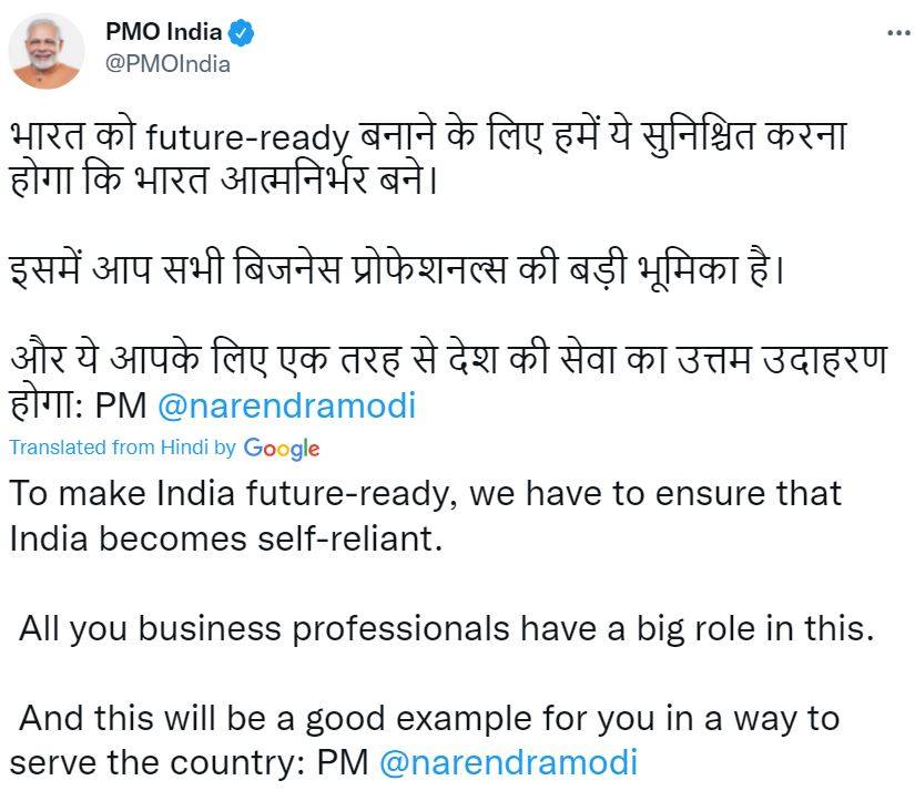 Appreciating the business professionals, Modi said, “To make India future-ready, we have to ensure that India becomes self-reliant. All you business professionals have a big role in this. And this will be a good example for you in a way to serve the country.”