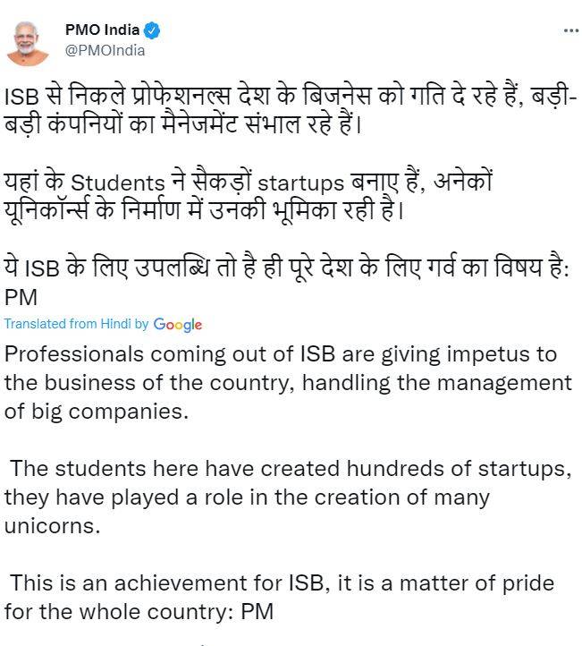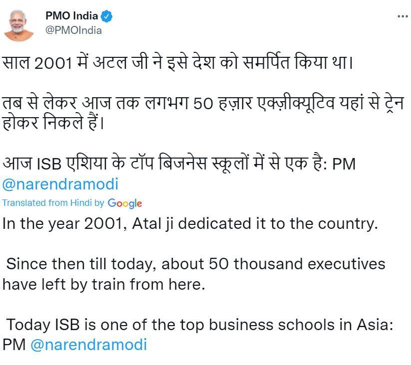 Praising the business institute, the PM said, “In the year 2001, Atal ji dedicated it to the country. Since then till today, about 50 thousand executives have left by train from here. Today ISB is one of the top business schools in Asia.”