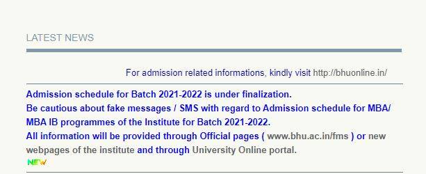 Informing the students interested in BHU Admissions 2021, the varsity further added, “All information will be provided through Official pages (www.bhu.ac.in/fms) or new webpages of the institute and through University Online portal.”