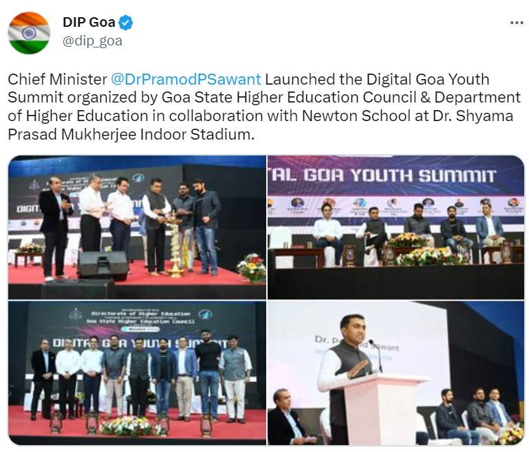 Digital Goa youth summit: The Government of Goa in collaboration with the Goa state higher education council and New school organised the digital Goa youth summit (DGYS). The summit was organized with an aim to provide 10,000 Goan students with industry-focused tech education for in-depth training and upskilling. Held at Dr Shyama Prasad Mukherjee Stadium, the summit witnessed discussions over the latest trends and opportunities in the tech industry by over 5,000 students.” The event also launched the digital Goa scholarship programme to help students pursing bachelor's or master's in any background to get jobs in tech companies.