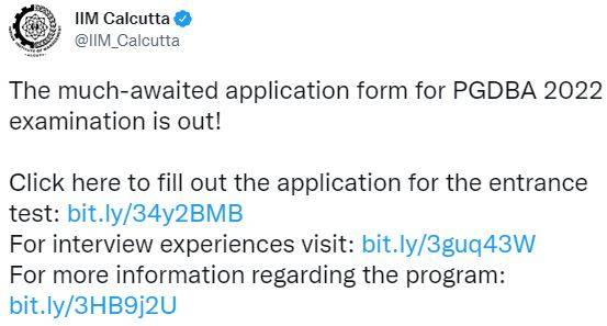 IIM Calcutta invites admission applications for PGDBA 2022; Apply by Feb 15