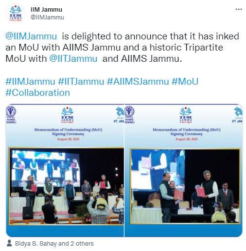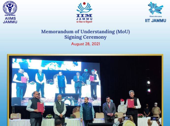 On this occasion, AIIMS Jammu signed three MoUs -MoU between IIM Jammu & AIIMS Jammu; Tripartite MoU between IIM Jammu, IIT Jammu & AIIMS Jammu and MoU between the University of Jammu and AIIMS Jammu.