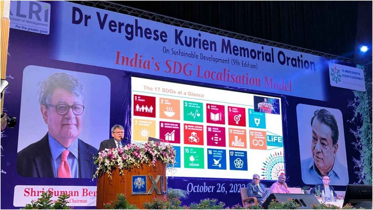XLRI- Xavier School of Management recently organized the 9th Dr Verghese Kurien Memorial Oration. Organized under the aegis of Fr Arrupe Center for Ecology and Sustainability (FACES), XLRI, in memory of the Founder of AMUL, Dr Verghese Kurien, popularly known as “the Milkman of India,” the oration aims to provide a platform to listen to and learn from thought leaders, social entrepreneurs, development sector professionals and policymakers who have made a significant contribution to the idea of an empowered, prosperous, and sustainable society. This year, Suman Bery, Vice Chairperson of NITI Ayog delivered the oration on the topic “Sustainable Development Goals 2030: Indian model of localisation”.