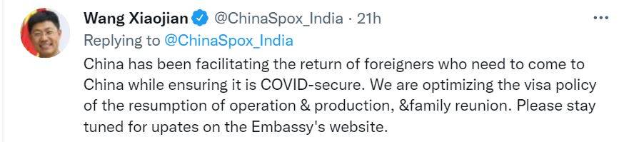 Shutting all the rumors, the Spokesperson of the Chinese Embassy in India, Wang Xiaojian took to Twitter and said, "It is not true that few Indians got telephonic confirmation from the Embassy of China in India that the Chinese embassy will start accepting visa applications from 10th of this month."