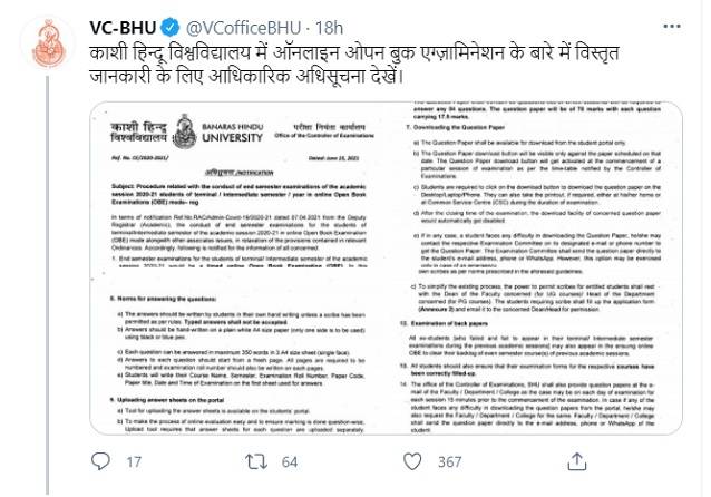 The exam will be conducted online open book exam. BHU has also released the BHU open book exams guidelines for the end-term students.