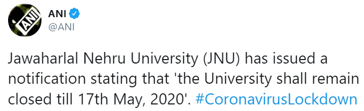 COVID-19 lockdown: Jawaharlal Nehru University to remain shut until May 17